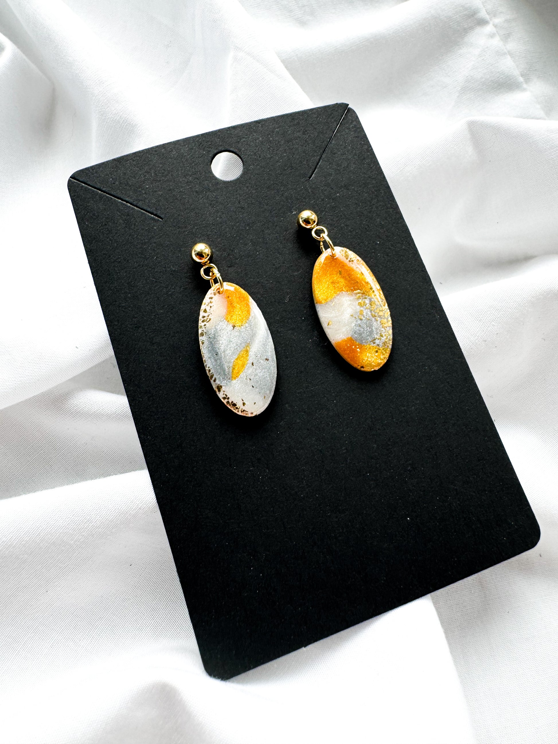 Auskarai pagaminti iš polimerinio molio. Padengti epoksidine derva.