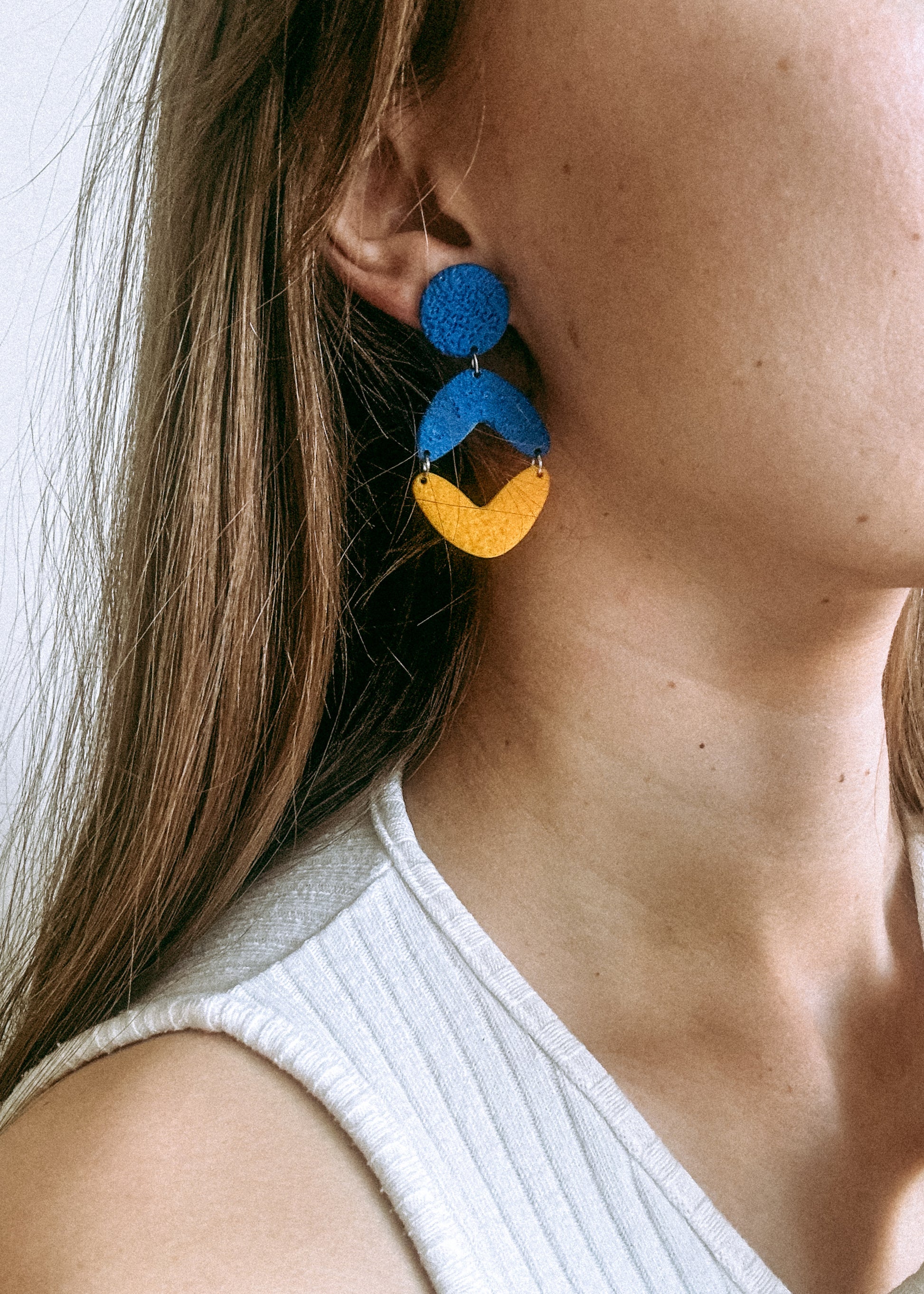 Auskarai pagaminti iš polimerinio molio.
