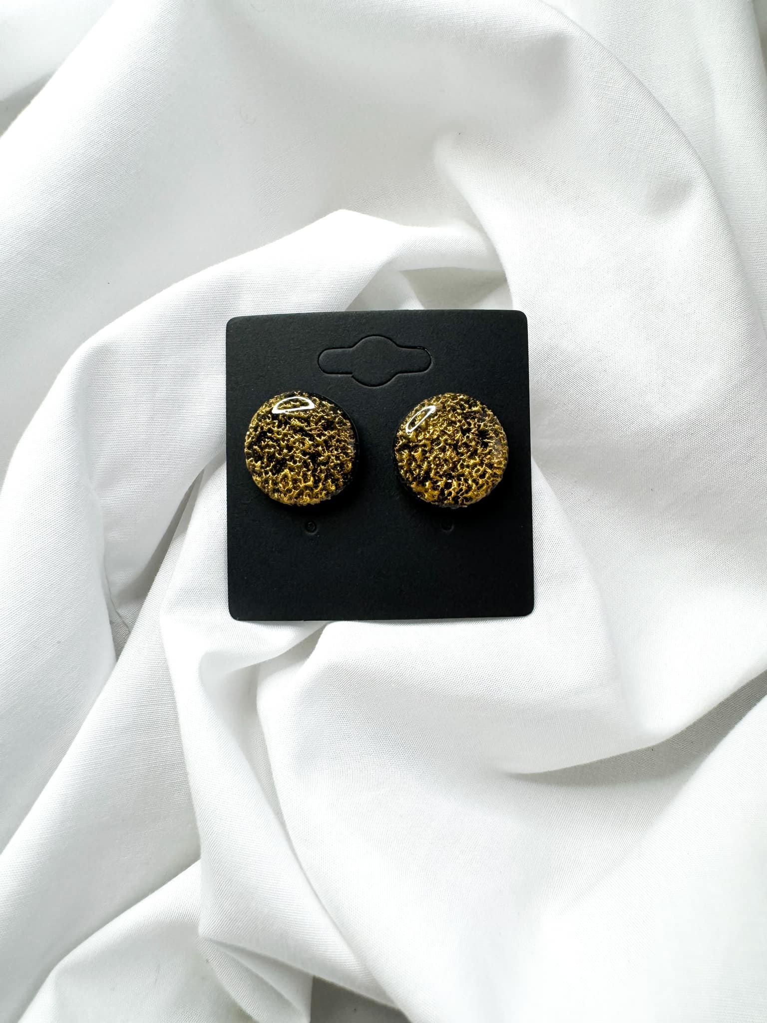 Maži granuliuoti aukso spalvos prigludę auskarai. Šiek tiek blizgantys, bet neužgožiantys jūsų.