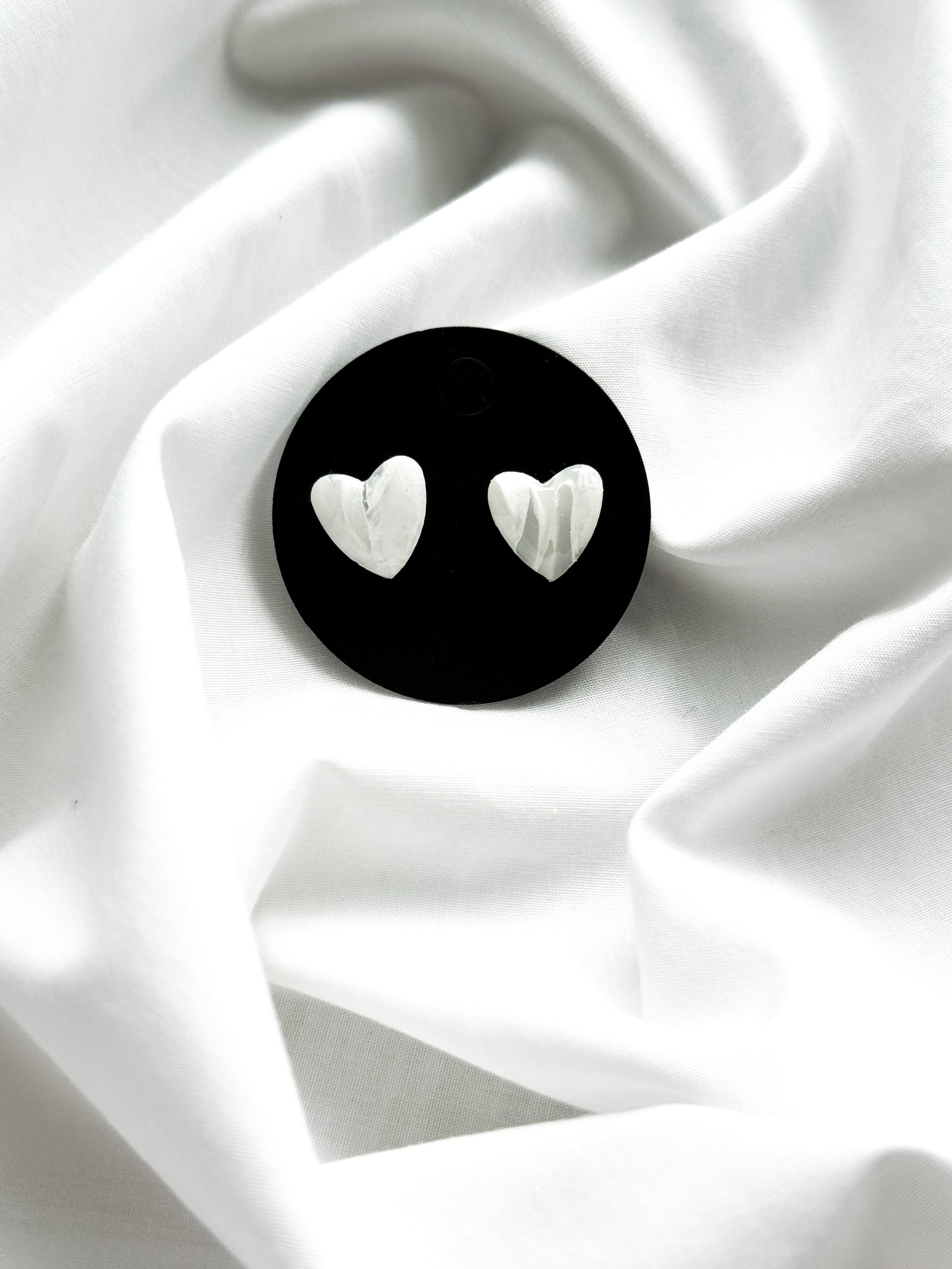 Lengvi,širdelės formos, pieno baltumo auskarai. Tiks moterims, kurios savo papuošalų dėžutėje nori lengvumo.