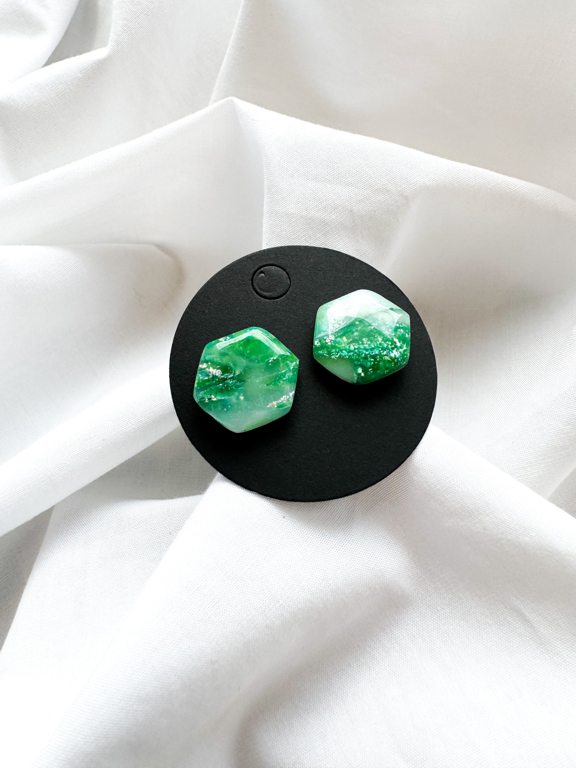 Auskarai pagaminti iš polimerinio molio. Padengti epoksidine derva.
