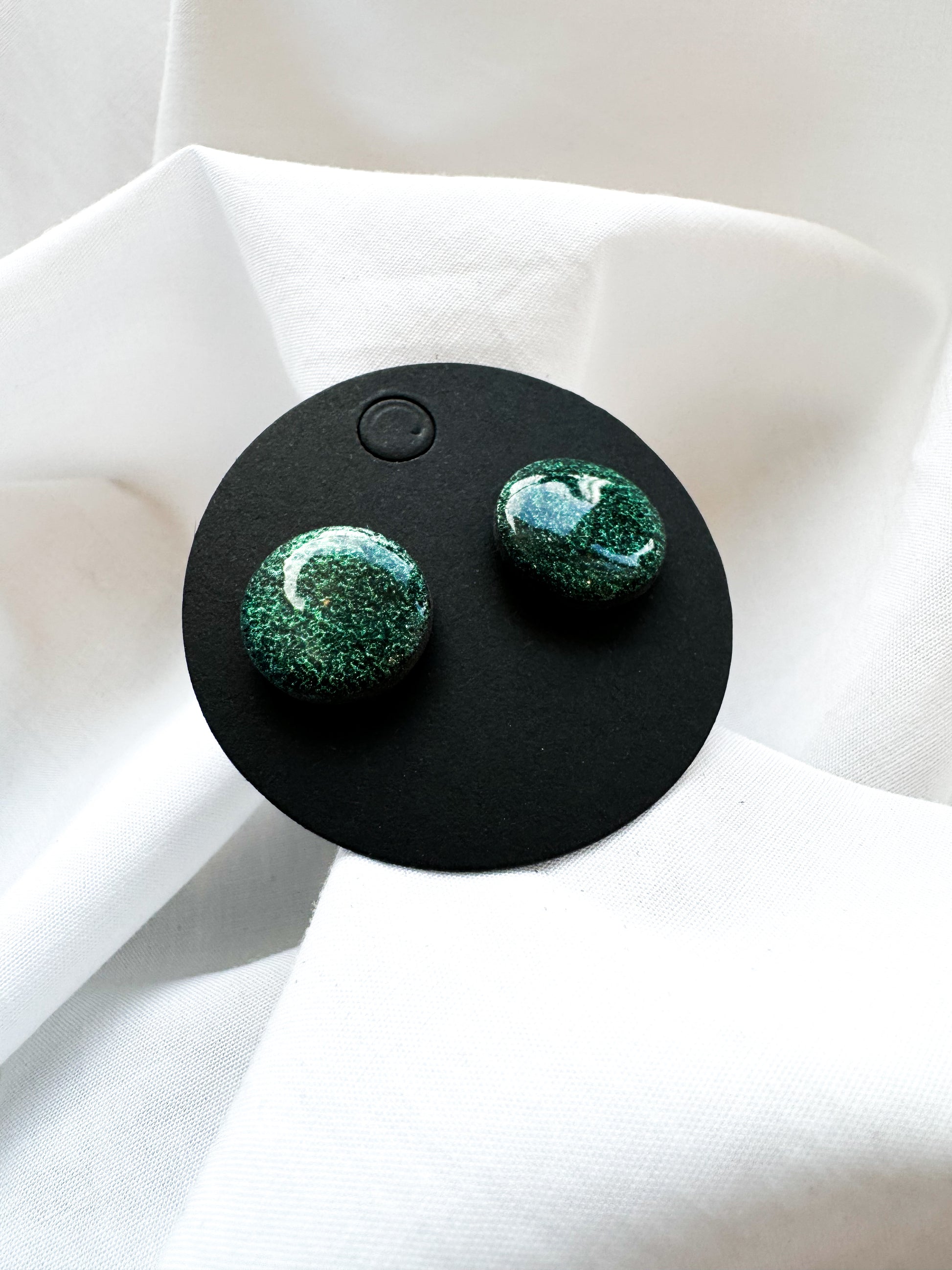 Auskarai pagaminti iš polimerinio molio. Padengti epoksidine derva.